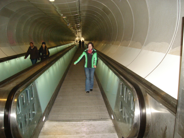 1967 de HBS doorlopen heb. (foto Chili comité) . We namen bus 44 door de wijk Charlois (zoals vele wijken woonden en wonen er nog steeds vele arbeiders die hun brood verdienen in de havens of petrochemische industrie en toeleveringsbedrijven) tot het Charloise Hoofd. In het oog springen hier de met badkamertegels bekleedde tunnelpaviljoens (luchtzuivering). U daalt hier af via de authentieke roltrappen en wandelt in de naoorlogse aangelegde fiets/voetgangers-tunnel, uniek in zijn soort! – onder de Maas. Zowel het tunneltracé, de auto- als deze tunnel vallen onder monumentenzorg.